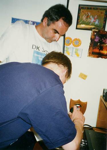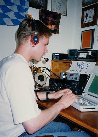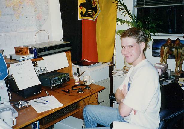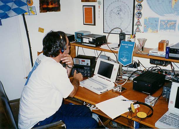 Dave in good mood - even though he has to hang in the chair for the full 18h (without operating) | When the last-10 rates peak over 400 for the first time, Dave starts to take screen shots. | Some decoration in the shack of Team Germany #1 | Representing Bavarian Contest Club (BCC) |