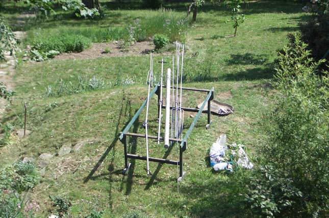 |  | Lots of KT34 parts waiting to be refurbished - how about a small 2el Yagi this year? | The new Fieldday Beam ready for fine-tuning |