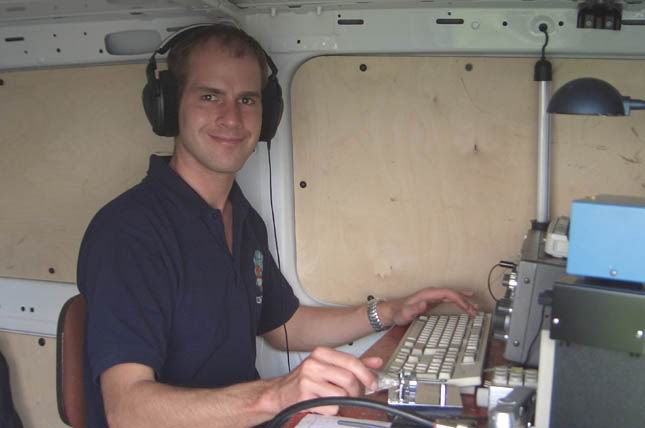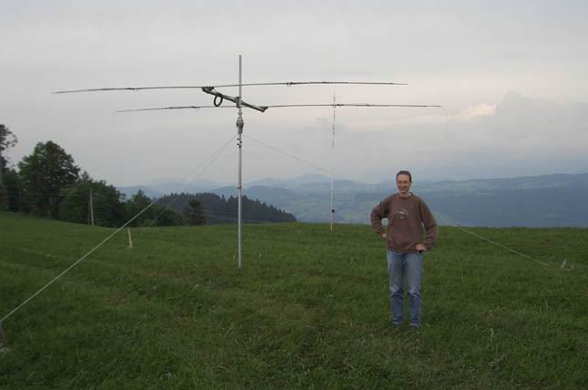 |  | | Manfred DJ5MW mounting the Beam | The next morning Manfred looks fresh enough for some serious mast-pushing! R7 Vertical in the background |