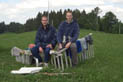 | 1068 QSOs (claiming a new Open-B record) and several rain showers later: The DL1IAO/p Fieldday team taking a moment before disassembling the antenna farm |