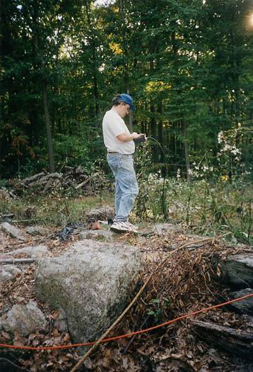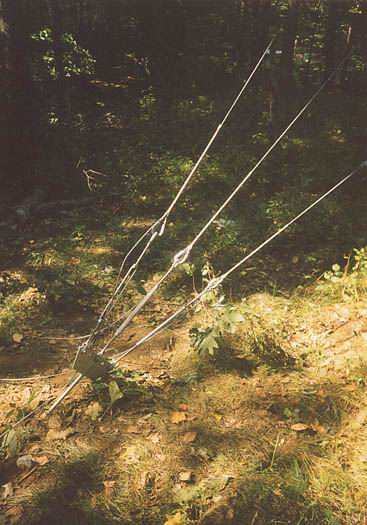 |  | | Bob KQ2M during initial SWR check. | One of the tower guying points |