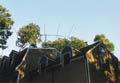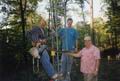 |  |  | The tower work crew. L-R: Joe K3NM, Tom N1MM & Alex W2OX | Pulling up the bottom antenna of a homebrew 20m 4/4 stack. |