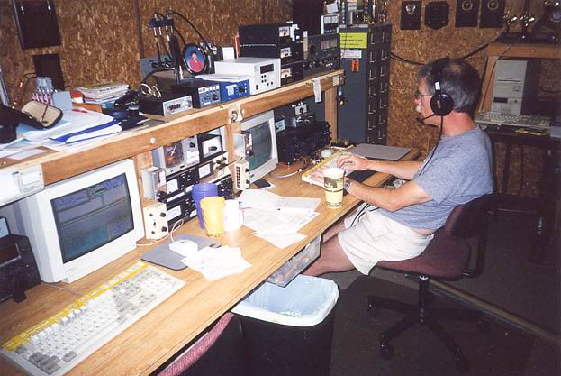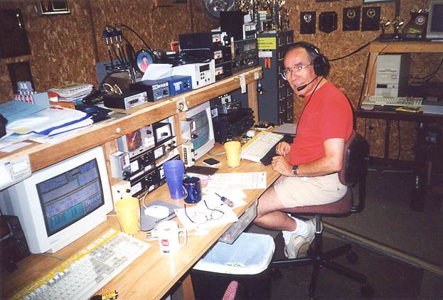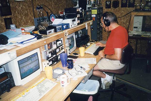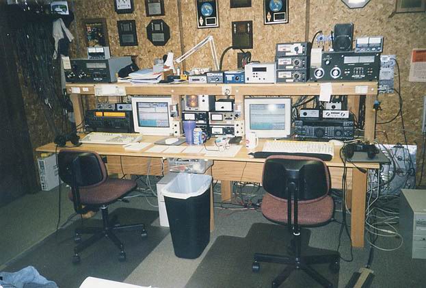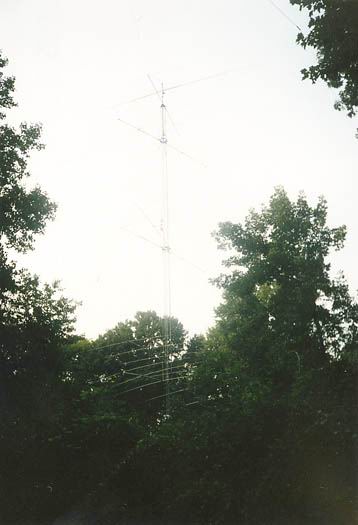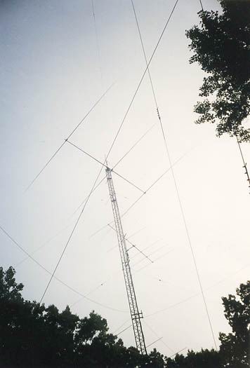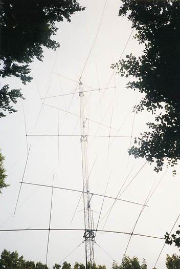 80m 4el K8UR Array, 40m 3el fullsize @40m, 10m 5/5/5 on sidemounts | The 2nd tower with 80m Force12 Rot. DP @42m, 20m 5/5/5 on TIC rotors, 15m 4/4/4 on sidemounts | Closer view of the 20 & 15m stacks. All Yagis except 40m are designed and built by N3RS. A 160m T-Vertical hangs between the two towers. |