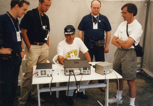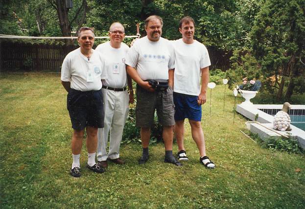| |  |  | | A wonderful place... | Short stop at our "neighbours" (L-R): Jacques F6BEE, John K4BAI, host OH2BP, Bill W4AN |