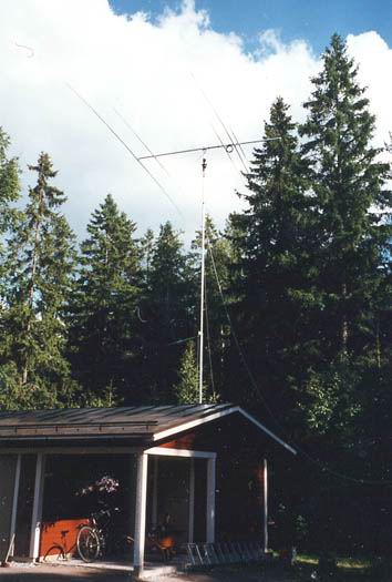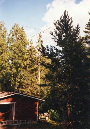 | |  |  |  | | At our host station OH2WC | The tribander sure is right in the trees... | The windom on a separate tower (TH6 not used...) |