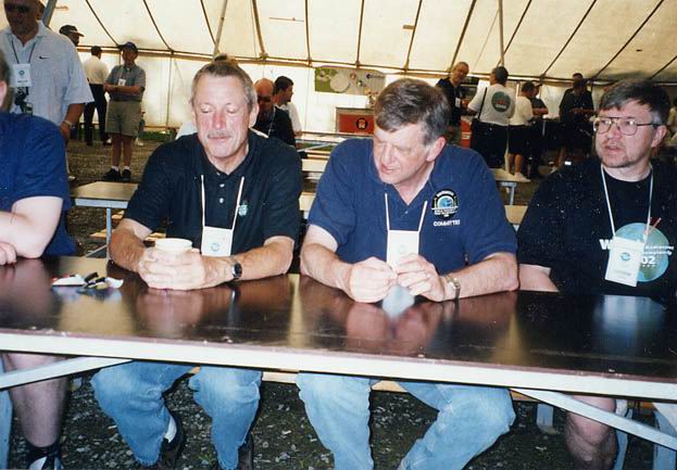 | |  |  |  | Prior to the drawing of locations and call signs (L-R): Dan N6MJ, Jeff N5TJ, Alex V47KP, Dave N2NL, Bill N3BB, John K4BAI, Alan N3AD | L-R: Rusty W6OAT, Dick K6KR, OH5BM | Roland drawing our location & call |