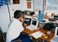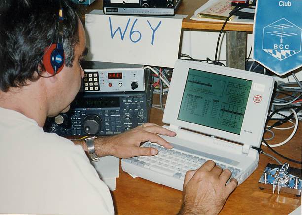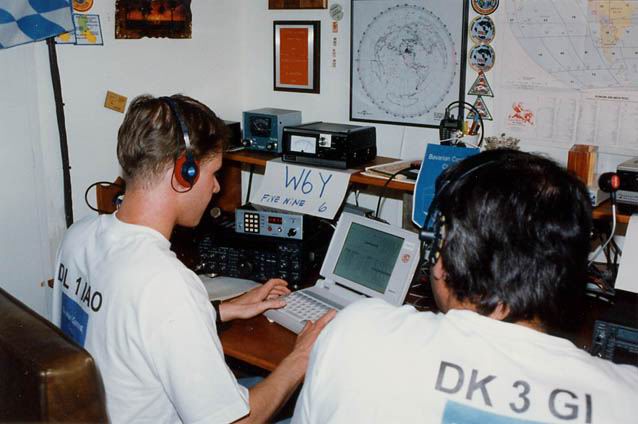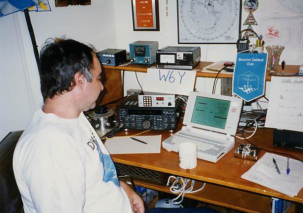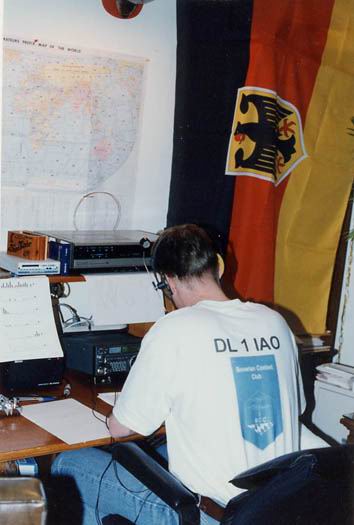 Dave in good mood - even though he has to hang in the chair for the full 18h (without operating) | When the last-10 rates peak over 400 for the first time, Dave starts to take screen shots. | Some decoration in the shack of Team Germany #1 | Representing Bavarian Contest Club (BCC) |