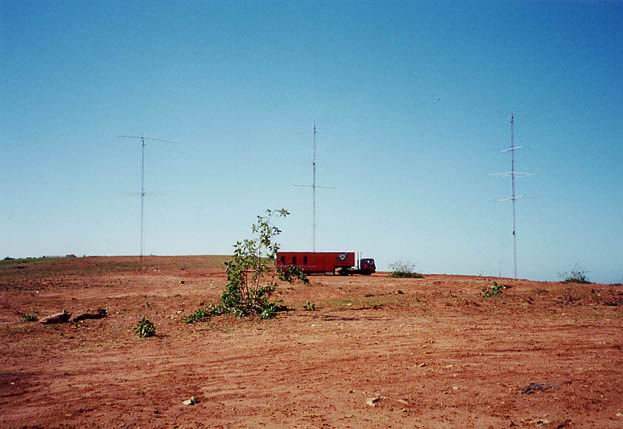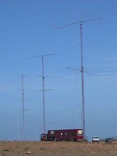| |  |  |  |  | Highband shack + antennas (L-R): 10, 15 & 20m | 10m tower | 20m Hy-Gain 204BA on a separate 16m push-up tower | 40m 3el KLM @24m & Cushcraft 40-2CD @16m. The tower is on top of a 37m cliff. |